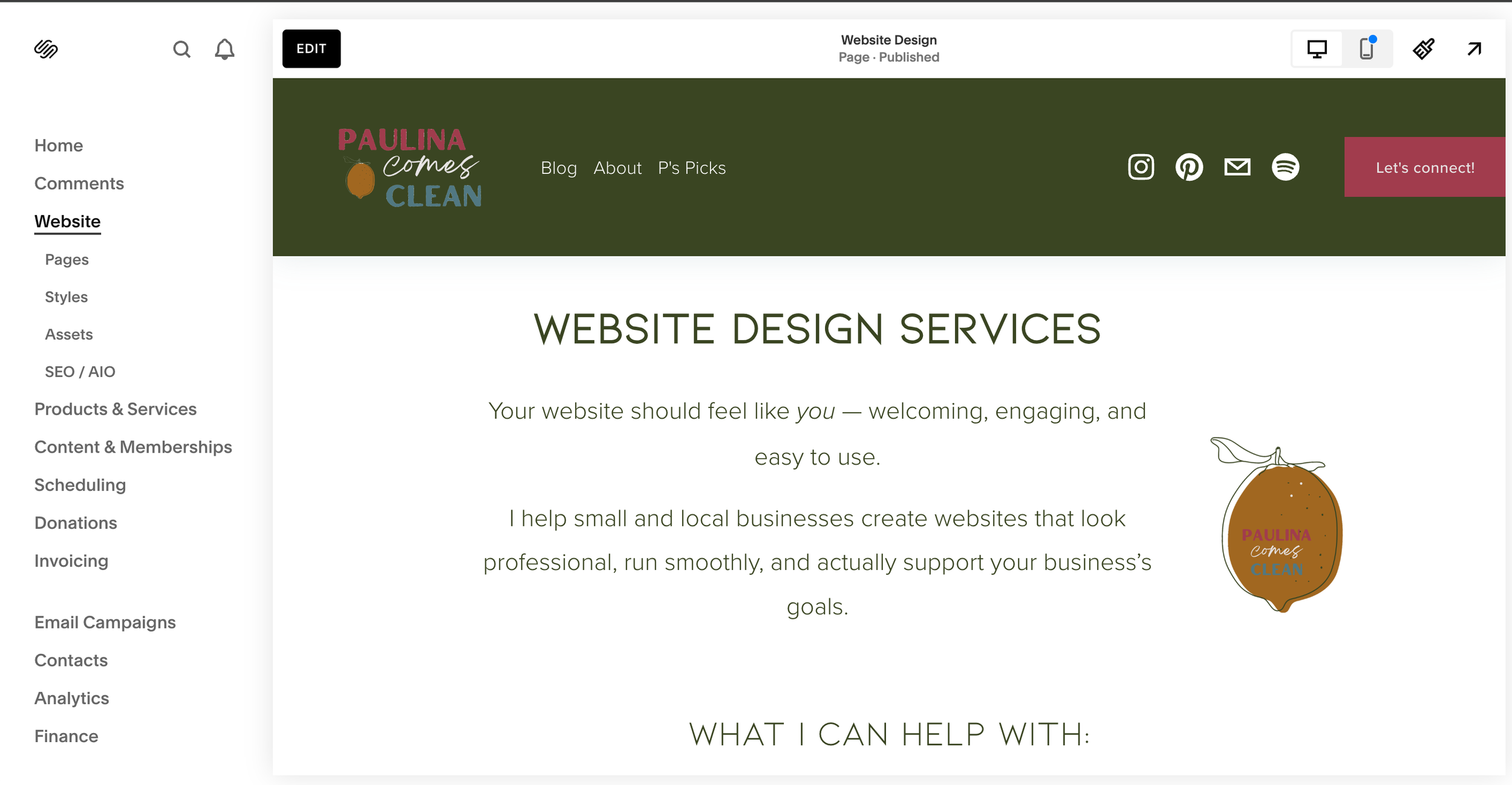 Squarespace was designed to create simple, eye-catching websites that draw people in & leave them desiring what you can provide.